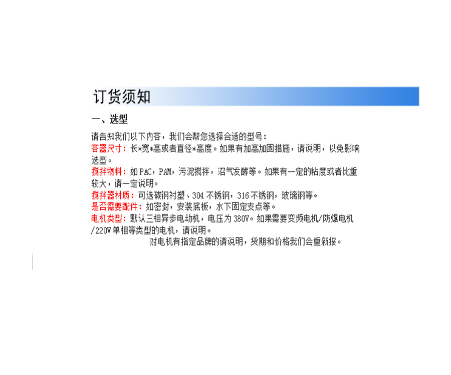 搅拌器材质:可选衬碳钢衬里的塑料,304不锈钢,316不锈钢,玻璃纤维提高塑料等。
